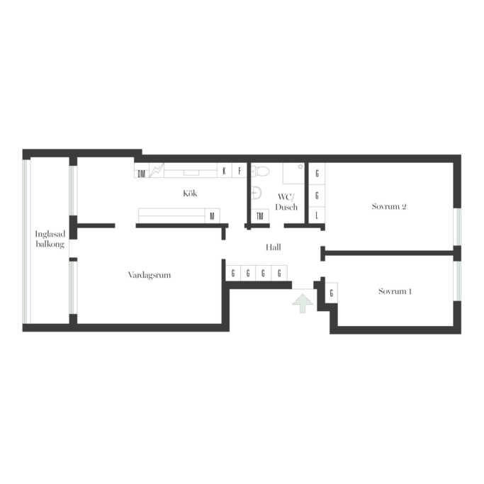 Planlösningen är praktisk och rationell med en rymlig hall där det finns en stor skjutgarderob. I anslutning till hallen på vänster sida ligger de två rymliga sovrummen. Rakt fram finns det stambytta och renoverade badrummet från 2016. Till höger i hallen finns det rymliga vardagsrummet med utgång till den möblerbara balkongen. Köket, även det renoverat för drygt 10 år sedan, nås via hallen eller från vardagsrummet. Öppningen från vardagsrummet kan teoretiskt göras större och därmed möjliggöra plats för fler matgäster. En bostad väl värt ett framtida besök och köp.