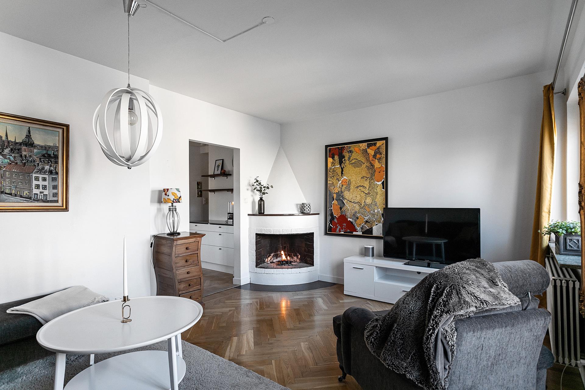 Chans till charmig och renoverad etagevåning om 4 rum på 110 kvm med dubbla entréer, öppen spis och 2 balkonger.
