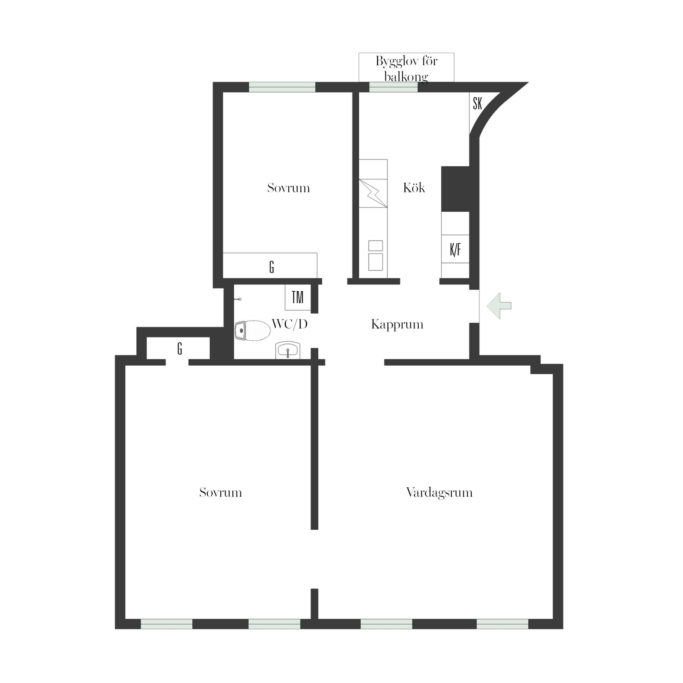 74 kvm / 2 rum