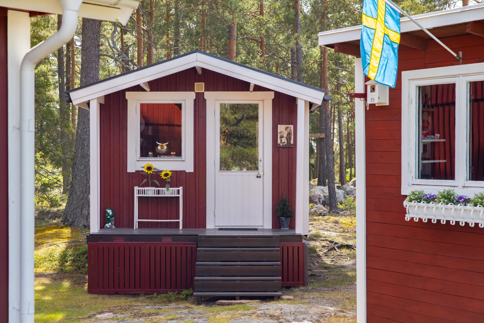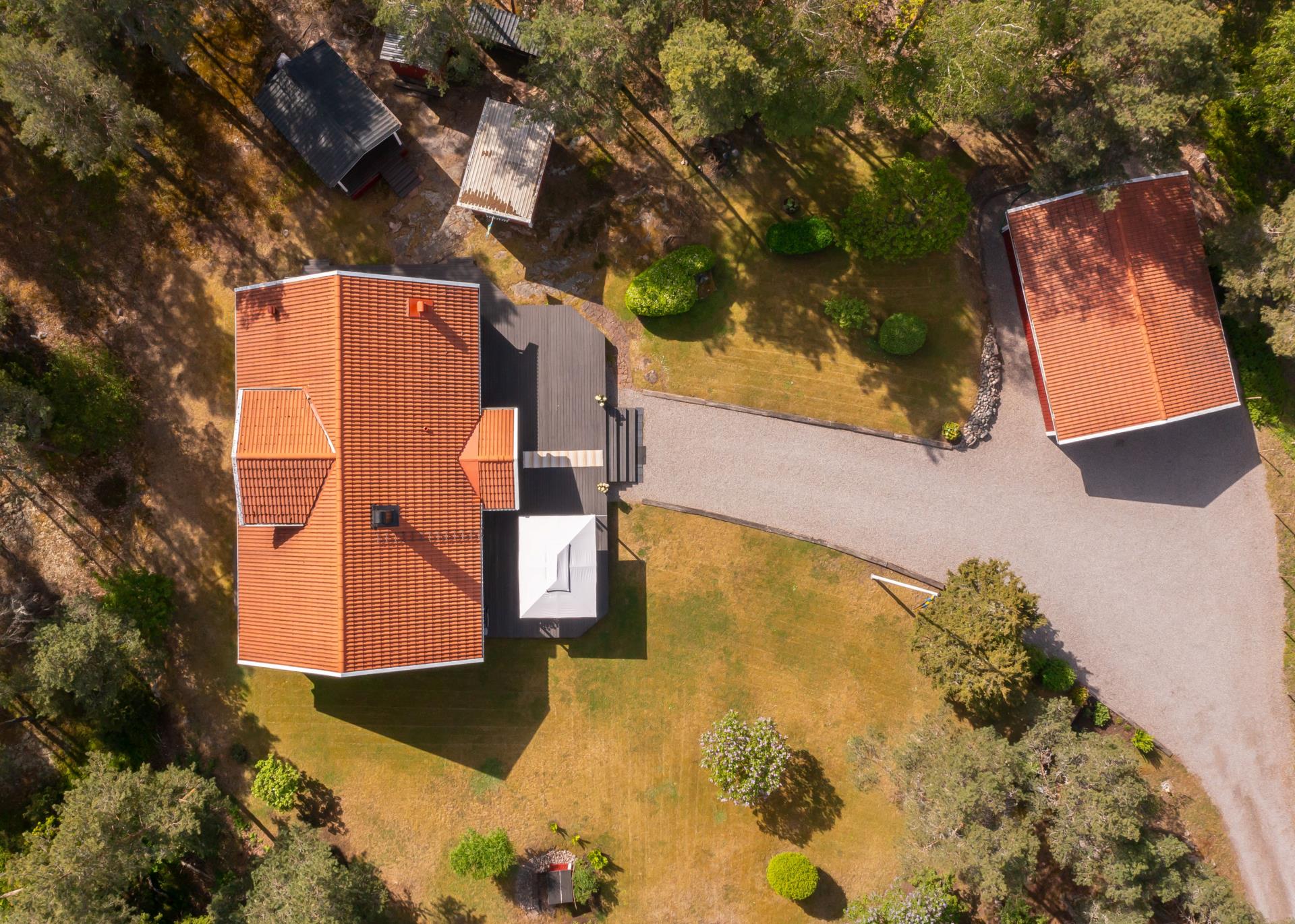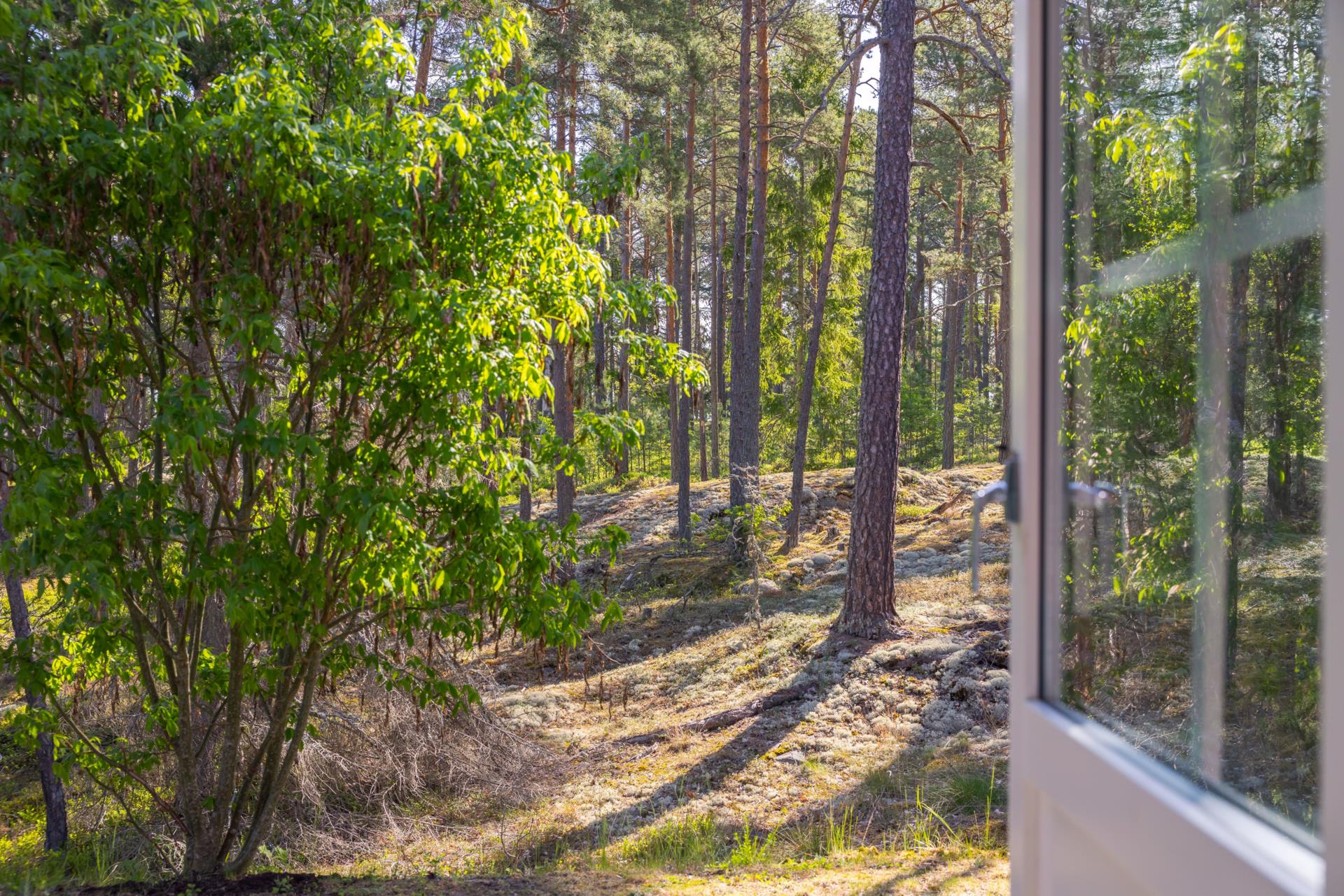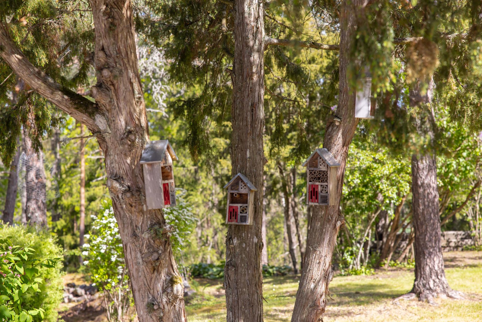 Tomten är ett kapitel för sig, helt underbar och lämplig för lek samtidigt som den ansluter till naturen på ett fint och naturligt vis, här kan du bara på några steg gå ut och plocka blåbär när det blir dags. Med tomt om hela 2 928 kvm har du gott om plats att skapa egna rum i trädgården, det finns en liten stuga som är isolerad som kan användas som gäststuga om man får besök. Det finns även snickarbod och trädgårdbod och stor vedförvaring och det finns även små bostäder till småfåglarna, livskvalitet på högsta nivå.