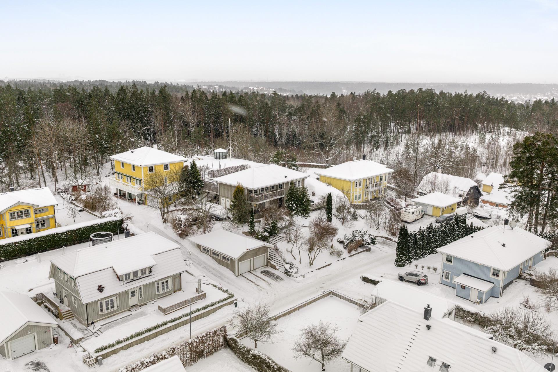 Högst upp på Steglitsvägen väntar fint renoverad villa med ogenerat läge och milsvid utsikt över skog och land. Det höga och fria läget ger generöst med ljusinsläpp och sol från tidig morgon till sen kväll. Läget är så lugnt det kan bli längst in på återvändsgränd med nästan ingen biltrafik och granne med skogen. Här vaknar du till fågelkvitter och känner lugnet, inte konstigt att nuvarande ägare har trivts här i drygt 20 år.