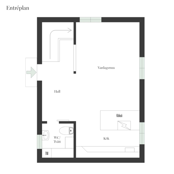 Här bor du på ca 71 kvm i två plan som är lätta att disponera om. På entreplanet hittar vi köket från Kvänum i ljust grått som är fint planerat för umgänge och där man ser ut i Sigtunas finaste park åt ena hållet och ut i den privata trädgården åt det andra hållet. Här ryms ett stort matbord med plats för många om man så vill.
