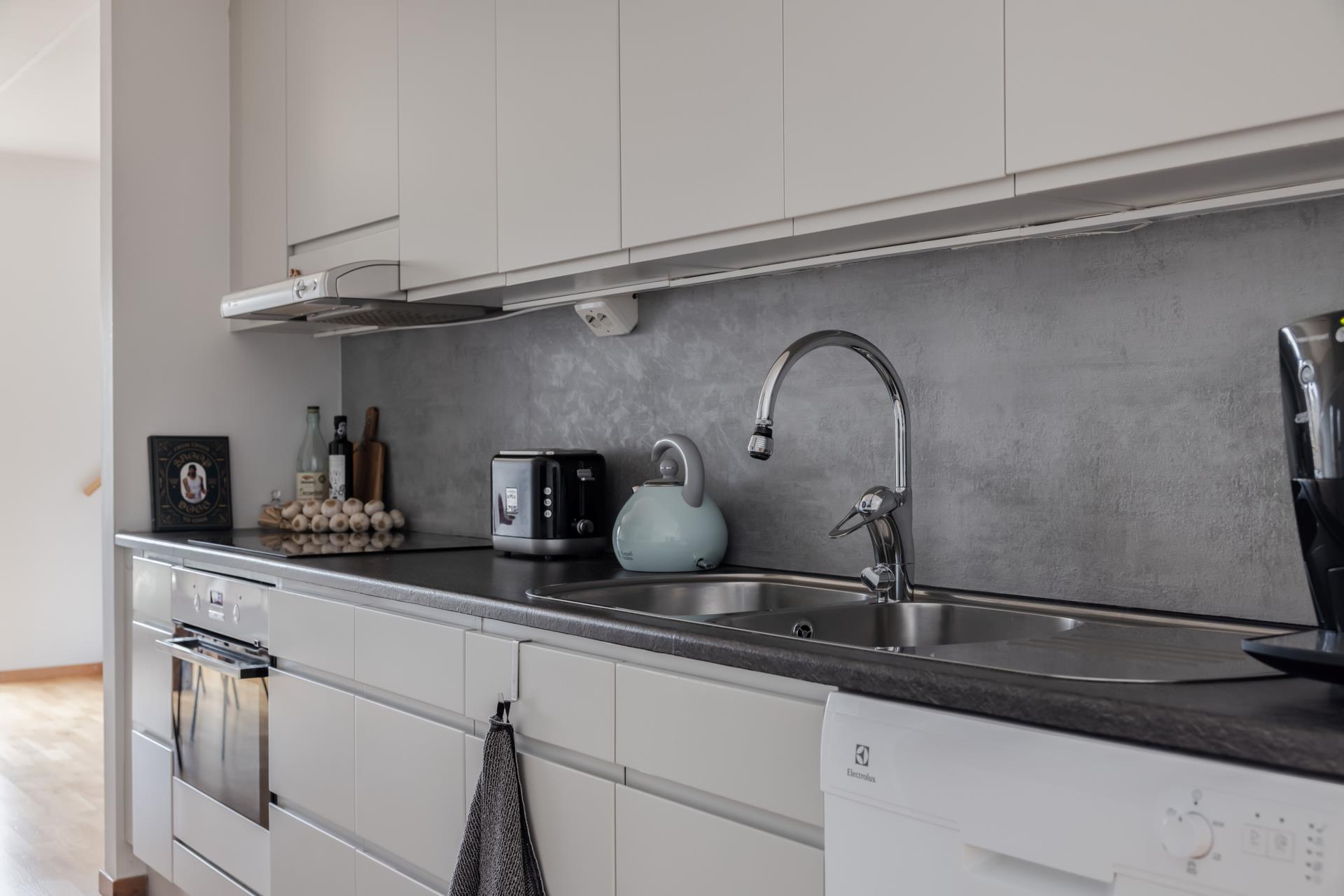 Huset är byggt 2012 och lägenheten håller en genomgående bra standard. Enhetliga parkettgolv i ek med vattenburen golvvärme vilket ger ett väldigt stilrent intryck utan radiatorer. Badrummen går i tidlösa färger med kakel/klinker i svart och vitt. Köket är fullt utrustat med alla bekvämligheter och till det får man en stor, härlig matplats i det intilliggande matrummet som också har utgång till balkongen. Stora fönster i alla rum vilket, tillsammans med genomgående planlösning, ger lägenheten ett tilltalande ljusflöde. Till lägenheten hör även ett källarförråd om ca 5,5 kvm.